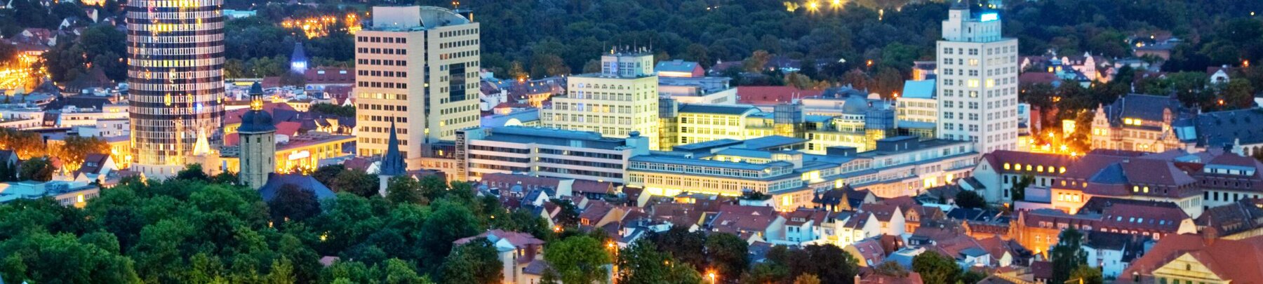 Jena ist vor allem über die Grenzen Thüringens als Universitätsstadt bekannt. Mit etwas über 110.000 Einwohner ist sie die zweitgrößte Stadt in Thüringen. Die Stadt liegt im mittleren Saaletal, umgeben von Mischwäldern. Geologische Phänomene, wie die Teufelslöcher oder die Studentenrutsche sind nur eine kleine Auswahl der Besonderheiten Jenas. Zu finden sind diese am Fuße der Kernberge, östlich von Jena.